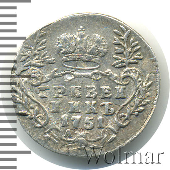 | Гривенник Елизаветы Петровны 1749 г. (VF)