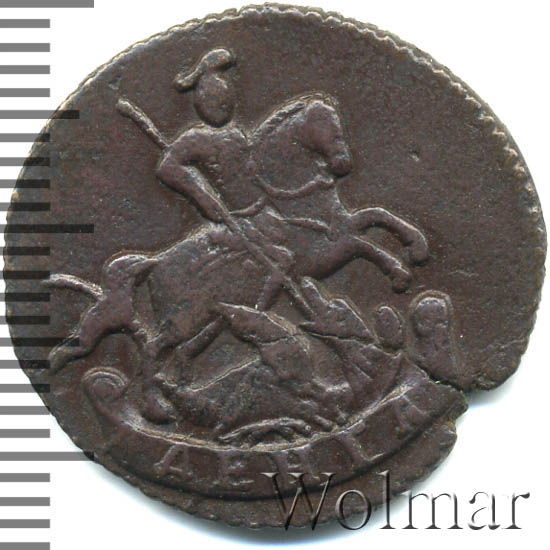 Описание и стоимость монеты Денга 1765 г. Екатерина II. Без обозначения монетного двора. Новодел